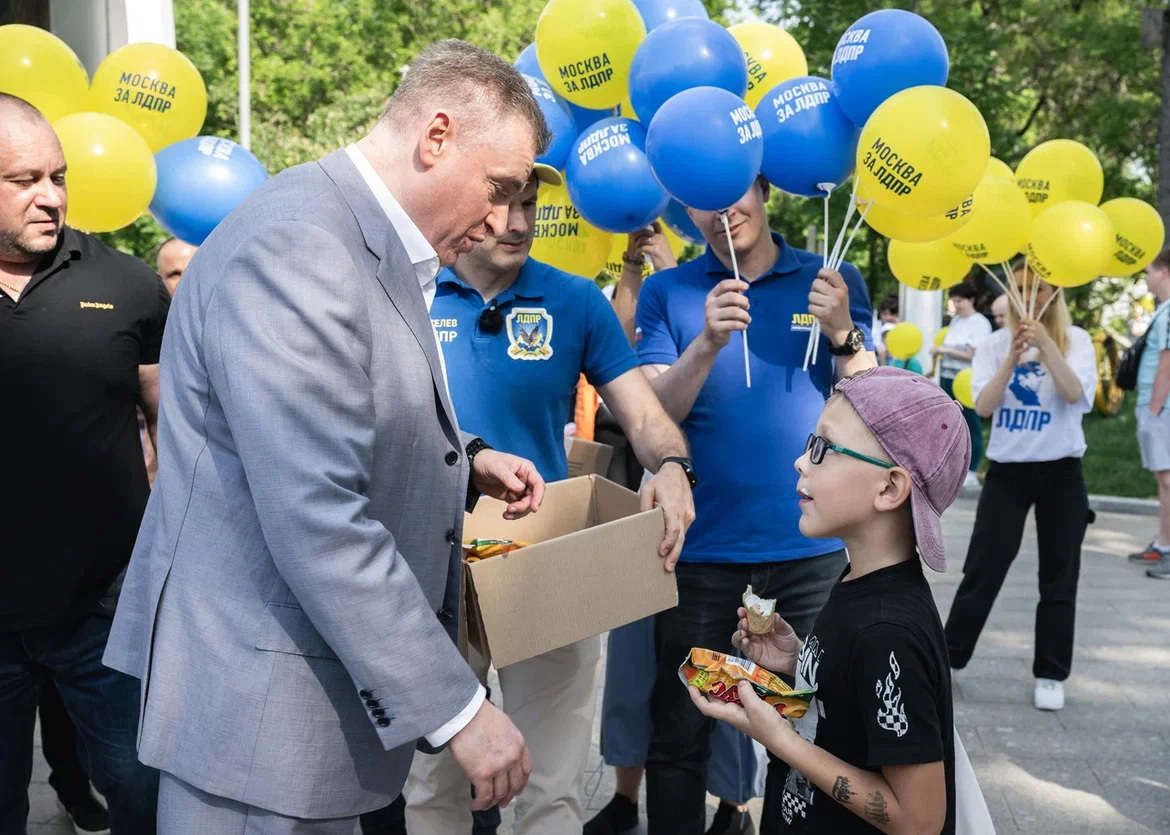 Леонид Слуцкий на Воробьёвых горах раздал мороженое в честь Дня защиты детей