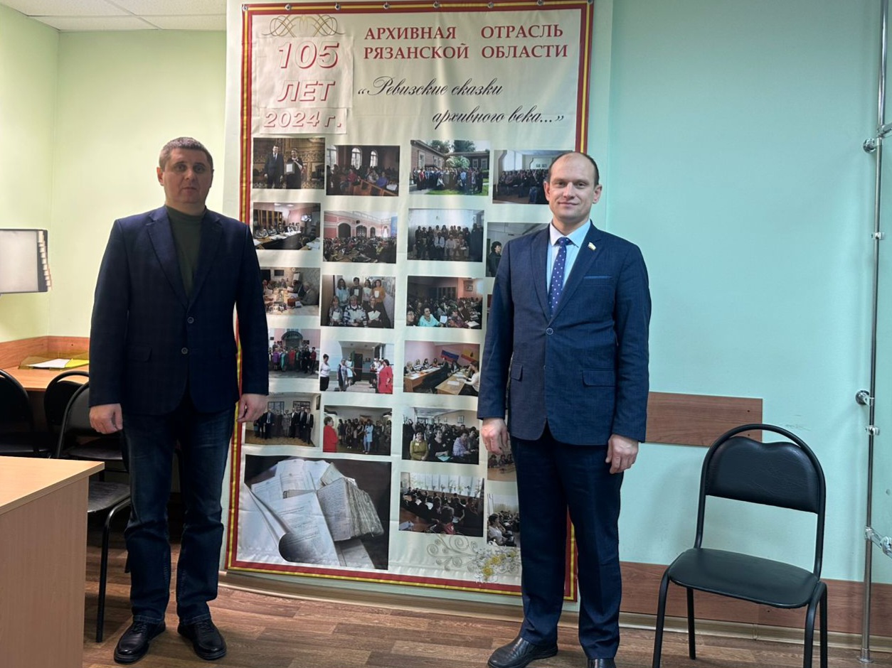 Депутат Рязанской городской Думы Евгений Мясин вместе с депутатом регионального парламента Александром Стариковым посетил Государственный архив Рязанской области