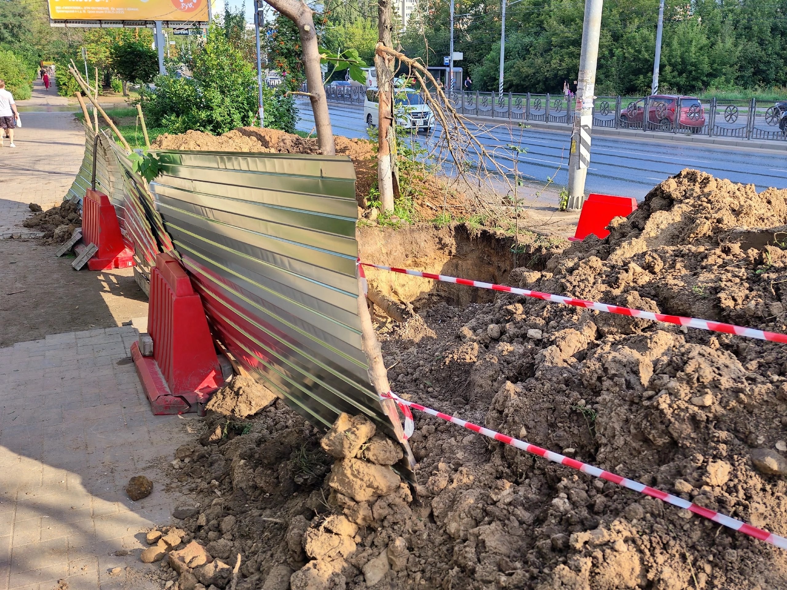В Рязани уже третий день продолжается борьба с прорвавшей канализацией, доблестные работники рязанского водоканала возвели малый укрепрайон на границе участка экологической катастрофы. Четыре профлиста, шесть веток, два пластиковых бордюра и полосатая ленточка весь вечер стойко сдерживали канализационный напор. На утро всё вновь потекло по улицам города