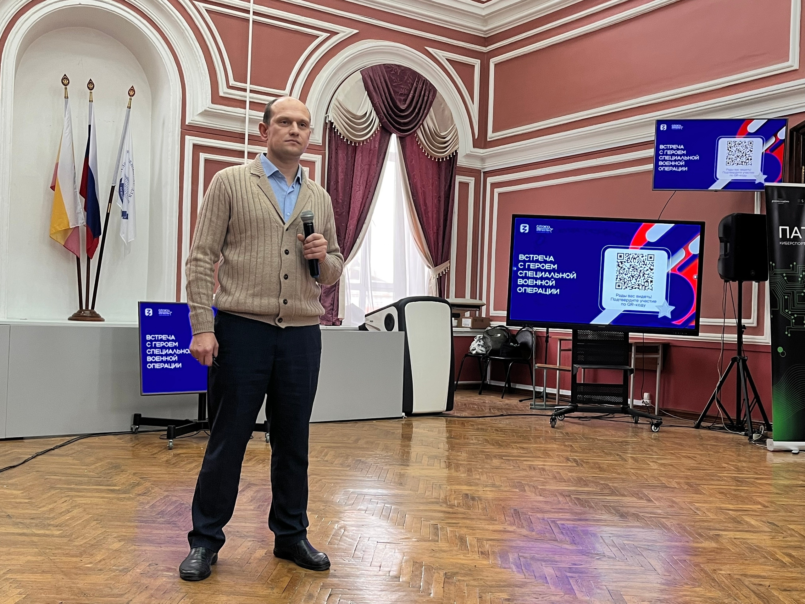 В стенах Рязанского государственного университета имени С.А. Есенина прошла важная встреча. Александр Стариков, председатель Союза ветеранов СВО Рязанской области и депутат регионального парламента от ЛДПР поделился со студентами своим опытом участия в специальной военной операции.