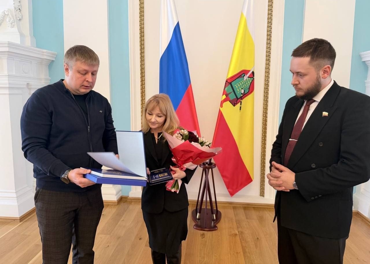 В Рязанской областной Думе прошло торжественное вручение второго в регионе нагрудного знака «Мать солдата» Ангелине Кулагиной, многодетной матери, посвятившей всю свою жизнь борьбе за права людей, за правду, за Родину. Она активно помогает фронту, пишет стихи о волонтёрах и бойцах СВО, воспитывая в своих детях патриотизм и любовь к Родине.