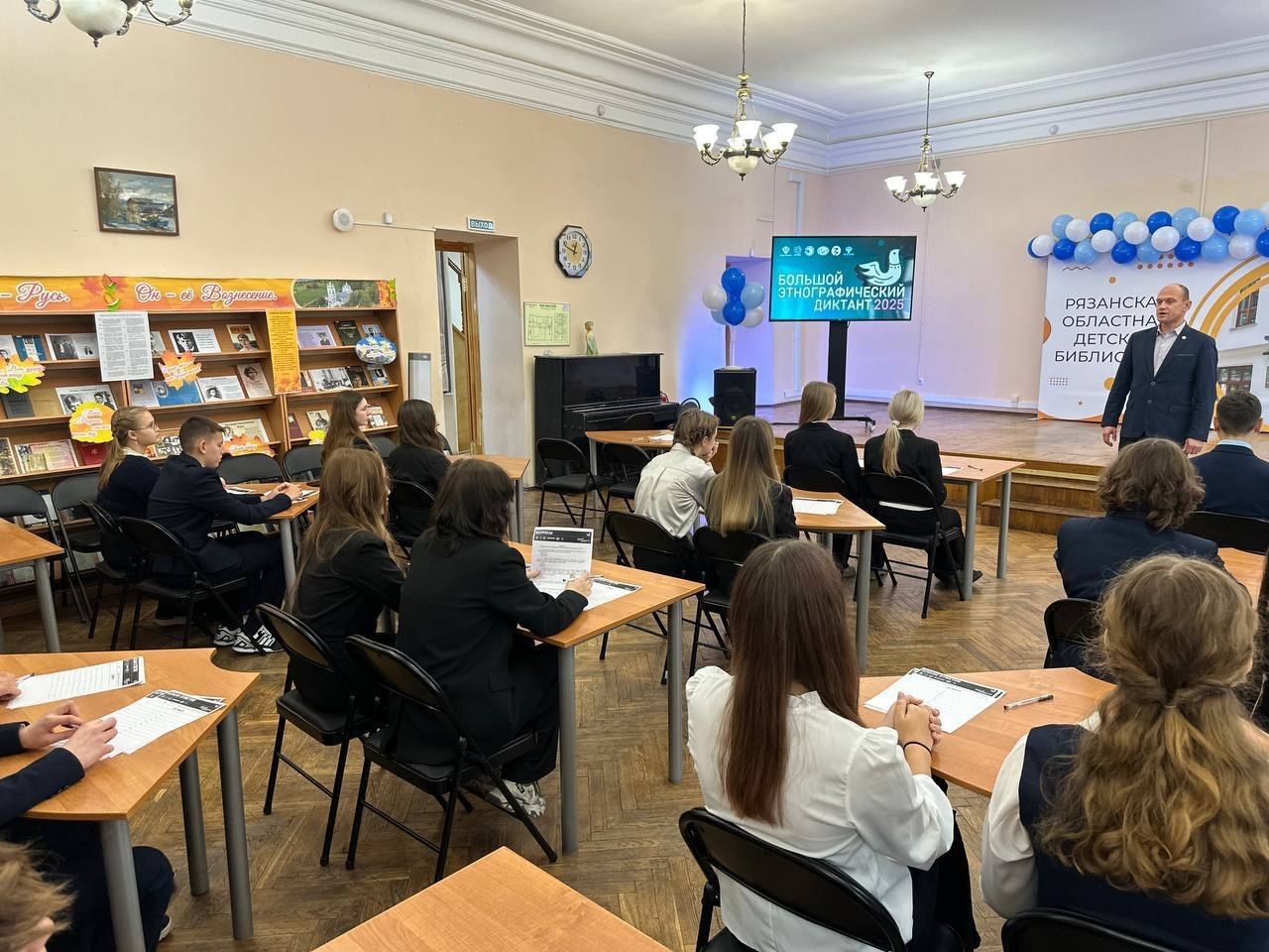 В Рязанской областной детской библиотеке прошёл «Большой этнографический диктант», на котором царила особая атмосфера единства и интереса к культуре нашей великой страны. Участников мероприятия поприветствовал депутат Рязанской областной Думы Александр Стариков.