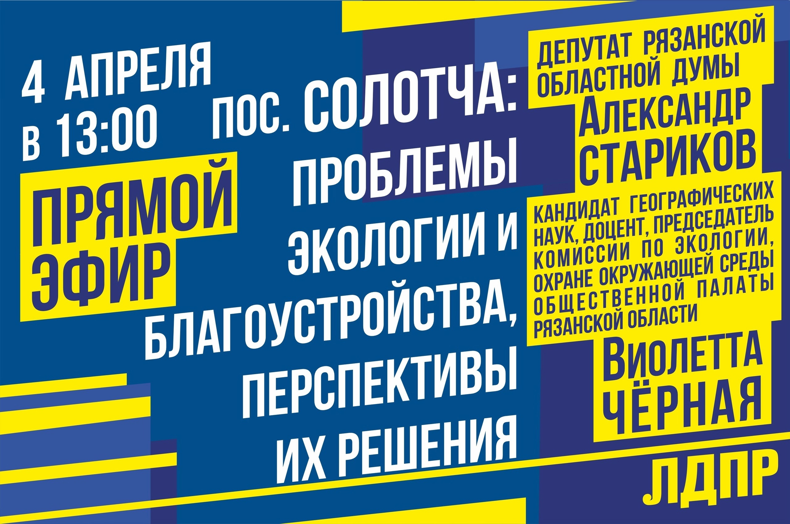 4 апреля в 13:00 состоится трансляция, посвящённая проблемам экологии и благоустройства Солотчи